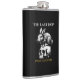 The flask itself is fine. It’s a cheap flask, obviously bought in bulk, however am prepared to overlook that. Given that it is a personalized item, I would have liked to have seen gift boxing instead of the generic packaging. Terrible printing, and/or quality. It’s a cheap, tacky vinyl. It is not cut straight and is also applied in a way that it is overhanging the bottom, causing the glue to catch on items and it will eventually roll and tear, damaging the wrap.