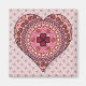 A classic Valentine’s Day heart masks a concentric circle mandala featuring layers of holiday themed designs such as flowers, Cupid's arrows, and hearts in various styles, including classic, paisley, and woven.