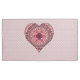 A classic Valentine’s Day heart masks a concentric circle mandala featuring layers of holiday themed designs such as flowers, Cupid's arrows, and hearts in various styles, including classic, paisley, and woven.