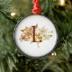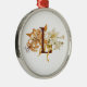 This ornament has a vintage lily bouquet featuring orange tiger lilies and white lilies tied with a blue ribbon bow. The original vintage image did not have the monogram letter. I recolored the bouquet to restore the faded colours and added the letter L to look as if it is entwined in the leaves and petals.