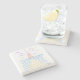 The coasters are gorgeous, a quality feel and heavy weight. They look like a precious archeological find. A rustic stone juxtaposed with a modern floral black and white print. I like the way the print goes slightly imperfect on the cut stone edges giving them a kind-of natural beauty.