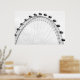A funky black and white poster of the iconic London Eye - a giant Ferris Wheel