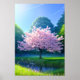 The magnificent cherry tree in full bloom stands tall and proud in the heart of the lush green field, drawing the eyes of all who wander by. Its delicate petals flutter in the gentle breeze, painting the surrounding landscape with a rosy hue.