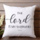 Throw pillow with elegant with the words "The Lord is My Shepherd' on the front and an elegant black and white lace print on the back. View all of our decor in our Zazzle store!