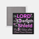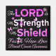 Inspirational breast cancer quote of “The Lord is my Strength and my Shield and “Faith Hope Love Breast Cancer Awareness” for breast cancer survivors and fighters who have faith in God.