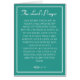 The Lord's prayer: "Our Father, which art in heaven, hallowed be thy Name, thy kingdom come, thy will be done, in earth as it is in heaven. Give us this day our daily bread. And forgive us our debts, as we forgive our debtors. And lead us not into temptation, but deliver us from evil. For thine is the kingdom, and the power, and the glory, for ever. Amen." A wonderful prayer for Christian families. Beautiful teal background and white text. Inside an outline of a cross with a short message of love. For encouragement, sympathy, get well soon occasions.