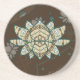 Layers of Celtic weave and Indian Mehndi from the Lotus Weave design have been masked under a lotus blossom shape in shades of teal and brown.