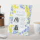 Who doesn't love a love story? Tell your family and guests your whole love story to give them something to read before and after your wedding with this floral blue and yellow wild flower sign. Original hand painted watercolor art and design by Sarah Trett for www.mylittleedenweddings.com on Zazzle.