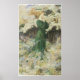 This beautiful watercolor was done in 1905. In this painting there is a young woman with blonde hair dressed in a deep green gown. She is standing in a forest. The ground and the trees are all covered with small white flowers.