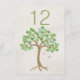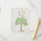 Stylish custom wedding reception table number card done in a pale ivory water colour background, with graphics of a tree, with green heart leaves and two pink origami cranes hanging down. Personalise the number for each table at your reception. Matching products are available.