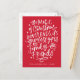 Send magical holiday greetings to friends and family with our festive non-photo holiday postcard. The phrase "The magic of Christmas never ends, its greatest gifts are family and friends" is displayed in a white hand-lettered script with a red background. Personalise the front of the cute holiday postcard by adding your name and the year. The postcard reverses to feature your return address and custom message.