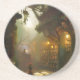 Amazing coaster features a magical bookstore nestled in an enchanted forest, with rows of books and glowing lights among mystical tree branches. Digital painting created using AI generating software. The perfect home decor gift for book lovers!