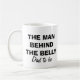The man behind the belly coffee mug for dad to be. Funny pregnancy joke for expectant father. New baby announcement for pregnant couple / parents.