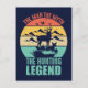 Retro-inspired sunset graphic of deer and birds flying past a mountainside meadow, featuring the words: "The Man, The Myth, The Hunting Legend". Click "Personalise" to change image and background colour! |Image by happyfordesign39 | Shutterstock. Image ID: 1786579295 | Shutterstock® - All Rights Reserved.