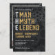 His life has been a great adventure! This fabulous black men's photo 100th birthday party invitation that says "The Man The Myth The Legend" in a trendy grunge CAP font in white and gold would be perfect for asking people to join you as you celebrate the man in your life's 100th birthday. This invitation is stylish, modern and contemporary with the wheels of time turning in the background. To see your unique invitations select "Personalize this template" and type in your information and upload a favorite photo. It's super easy!