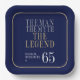 His life has been a great adventure! These fabulous navy blue men's 65th birthday 9" square paper plates that say "The Man The Myth The Legend" in a classic font in silver and gold are perfect for celebrating the man in your life's 65th birthday. These plates are trendy, stylish, modern and contemporary. To see your unique plates select "Personalise this template" and type in your information. It's super easy!