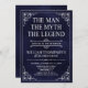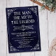 He IS The Man The Myth The LEGEND! His life has been an amazing adventure and it's time to celebrate his legacy and him. This textured navy blue paper with white type and white scrolled corner 85th Birthday invitation is perfect for inviting friends and family to join you in honouring and celebrating this incredible milestone birthday! To see your unique invitations click on "Personalise this Template" and type in your information. It's super easy!