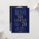 His life has been a great adventure! This fabulous navy blue men's 70th birthday photo surprise party invitation that says "The Man The Myth The Legend" in a classic font in silver and gold would be perfect for asking people to join you as you celebrate the man in your life's 70th birthday. This invitation is trendy, stylish, modern and contemporary. To see your unique invitations select "Personalise this template", upload a favourite photo and type in your information. It's super easy!