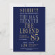 His life has been a great adventure! This fabulous navy blue men's 85th birthday surprise party invitation that says "The Man The Myth The Legend" in a classic font in silver and gold would be perfect for asking people to join you as you celebrate the man in your life's 85th birthday. This invitation is trendy, stylish, modern and contemporary. To see your unique invitations select "Personalize this template" and type in your information. It's super easy!