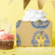 This customisable design is based on the golden mask of the Egyptian boy king Tutankhamun on a gold back ground.