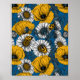Seamless vector pattern made with hand drawn daisies, poppies and ladybugs. Yellow and white colour version.