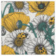 Seamless vector pattern made with hand drawn daisies, poppies and ladybugs. Yellow and white colour version.