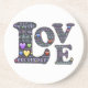 A wonderfully fun design on the meaning of love with the oversized letters of "Love" will with synonyms for the word love.