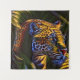This design features a stunning and fierce Jaguar lurking amongst the lush jungle foliage, with it's powerful muscles tensed and ready to pounce, and it's piercing yellow eyes fixed on the prey. The jungle foliage is depicted in intricate detail with vivid greens and earthy browns creating a lush and vibrant jungle scene. The Jaguar's coat is rendered in rich, warm tones of golden browns and black with distinctive spots, adding to the overall sense of depth and texture. The stunning effect of this print captures the raw power and beauty of this magnificent big cat.