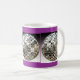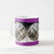 Three silver mirror balls wrap around this cool and unique disco themed mug. Shown is a white mug with a blue border and purple accents, but many styles and colours of mugs are available. To change the blue background colour and groovy purple border just click on "Customise it" and then click on "edit" and then "background" to change them to your taste. Get ready to party! Makes a fun gift!