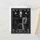 Grunge tarot card design for coffee lovers! The Moka Pot. White and black illustrations with a moka pot coffee maker, coffee beans, and skull in a top hat.