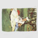 The Monet family in their garden. Edouard Manet . Summer landscape. A woman in a beautiful dress and hat is sitting in the garden under a tree on the grass. A boy is sitting on the grass nearby. Reproduction of famous works of art images in the public domain.