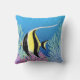 Original fine art design of an elegant Moorish Idol from the Indo Pacific reefs by artist Carolyn McFann printed on a quality American Mojo pillow for coral reef and saltwater aquarium fish fans.