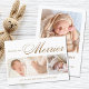 With a customisable space for 3 of your baby's photos on the front and 1 photo on the back and all the important details, this announcement is the perfect way to share the news of your newest family member. The playful "The More the Merrier" quote in script calligraphy is an elegant way to let everyone know that your family is growing and that you're excited to celebrate with them this holiday season.