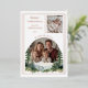 Celebrate a year of joy, growth, and new beginnings with this elegant two-photo Christmas card featuring a foil design. The front showcases a modern collage layout with a small rectangular photo at the top and a curved “the more the merrier” caption framing a circular photo below. An evergreen forest illustration flows across the bottom, adding warmth and natural charm to the design.