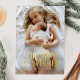 Elegant baby announcement card during the holidays featuring a typography font that says "the more the merrier" on top of your newborn's photo. Works best with a horizontal picture.