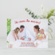 All-in-One, Birth Announcement and Holiday Card with your own photo and custom message. The wording reads "The more the merrier!" in festive red, handlettered script. The template is set up ready for you to add your photo, greeting and a note when baby was born. Your message at the bottom is lettered in red and black, on a white overlay to help it stand out. The back of the card is matching red and with gold snowflakes and hearts. Please browse our store for alternative designs.