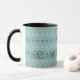 Stylish coffee mug with a teal print that can be switched to any colour of your choice. The morning routine text can be personalised to any message or the text is also removable.