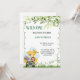Cute Safari theme baby shower invitation template card featuring a hand drawn illustration of a giraffe, leopard, rhino, lion, elephant, and zebra.