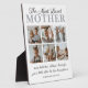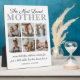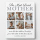 Modern mothers day picture plaque featuring the cute saying "the most loved mother", 6 photos of the grandkids, their names, and the caption "moms hold their children's hands for just a little while, but their hearts forever".