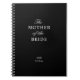 Personalised The Mother of the Bride spiral notebook. Classic script and block text with bride and groom initials and wedding date text field. White text on a black background.