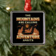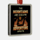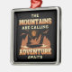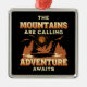 Grunge retro style outdoor illustration with " The mountains are calling, adventure awaits" text design and mountain scene decoration