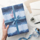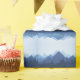 Mountain silhouettes and reflections in shades of blue, with customisable text. Sample text is based on a quote by naturalist John Muir, and can be changed or deleted.