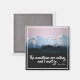 This magnet features a photograph of a snow-covered Alaskan mountain range at dusk with a beautiful pink-coloured sky. The quote by John Muir, "the mountains are calling and I must go."
