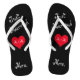 These fun Just Married flip flops are the perfect gift for the bride to be. The design features black flip flops with the words "Just Married" in a fun girly typography at an angle. In the middle is a red heart with your initials or monograms. At the heal is the word Mrs.. These are really fun flips for the bride! Copyright Kathy Henis