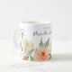 This beautiful floral coffee mug is a fabulous way to have your cup of coffee. With it's soft peach and cream watercolor flowers and modern script and block fonts to personalise your name, they will add a wonderful touch to your office desk or kitchen table (and no one will snitch it on you!)