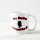 Hillbilly profile sporting a picture perfect mullet with phrase, “The Mullet-Some Legends Never Die” written above and below in curved black & red layered font.