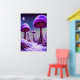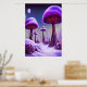 A large mushroom forest where you can find large purple mushroom, blue sky, snow and winter. This is a AI generated art