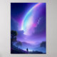 A lone tracker stands atop a hill, gazing in awe at the breathtaking sight of the starry sky. High above, a giant and mysterious moon adds an air of intrigue to the celestial spectacle. Amidst the vastness of the night, the tracker becomes one with the cosmos, embracing the magic of the universe.
