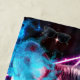 This space themed design features a wolf with vibrant blue and pink smoke coming out of its eyes above a planet with a geometrical neon light show.
