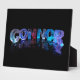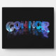 This image is a photograph of handmade letters, which change randomly, producing unique patterns and colors of light. The name Connor is reflected in still water, with floating foil hexagons. The letters look as if they're carved from crackled ice or crystal. If you can't find a name you want, please get in touch, and I'll put it on my list. Please see NamesInLights.co.uk for larger examples of the standard of photography on these products.